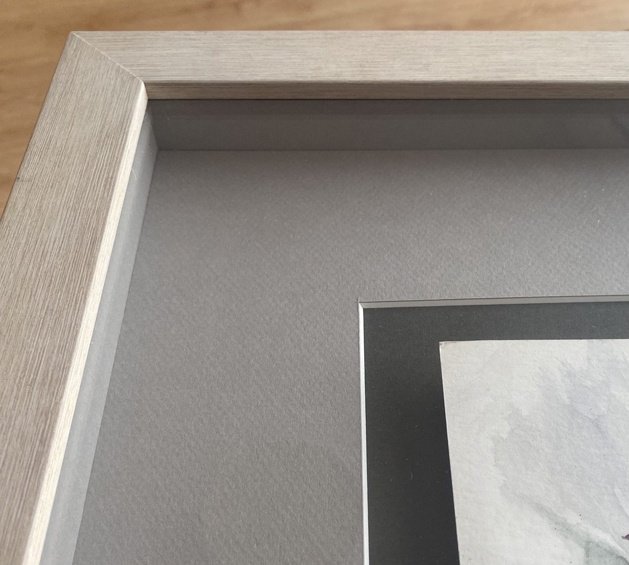 Enmarcación de madera y paspartú.